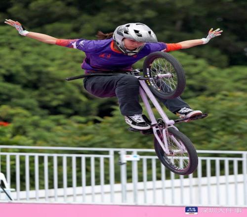 2025年10月25日,十五运会男子自由式公园赛决赛,广东队卢畅在完成动作后激动地把自行车甩向空中。