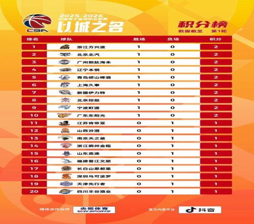12月12日至14日,2025—2026赛季CBA联赛常规赛第一轮全面展开。北京队、青岛队、广州队、辽宁队、宁波队客场取胜,其余5场比赛均为主队获胜。