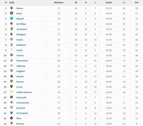 据统计,在2025年度(2025年1月1日至2025年12月31日)的意甲积分榜中,罗马高居榜首,国米次席,那不勒斯、米兰分列三四。
