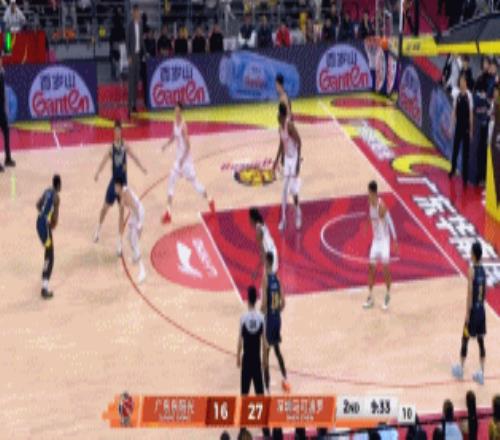 节中杜锋撤下徐杰换上张文逸,贺希宁撞开张文逸打出2+1,广东三分球连打3铁,与此同时,6分钟篮板更是1-7远远落后,周鹏飚进三分后,深圳领先来到19-10。