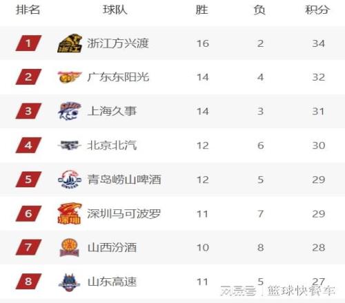 附:CBA积分榜最新排名