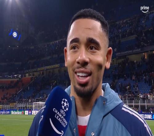 欧冠联赛阶段第7轮,阿森纳客场3-1战胜国米,本场比赛梅开二度的热苏斯赛后接受了亚马逊频道的采访。你在赛前提到,这是你14个月以来第一次在欧冠首发。本身就已经很特别了,而最终
