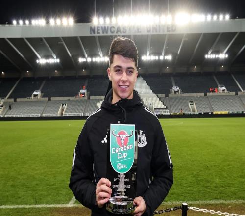 纽卡斯尔联19岁小将刘易斯-米利凭借在英联杯四分之一决赛中的关键发挥,当选本轮最佳球员。